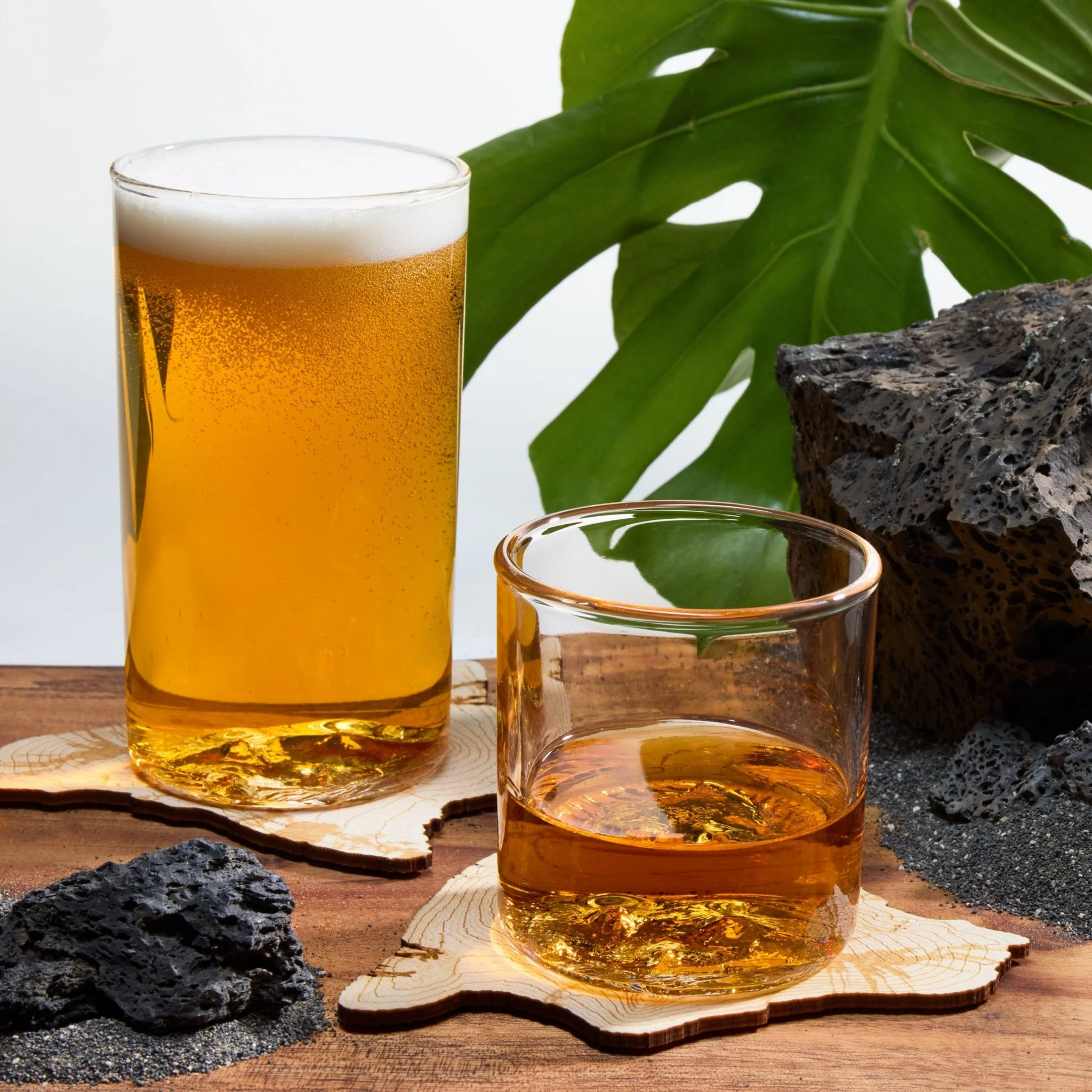 The Big Island is the largest in the Hawaiian chain and home to Mauna Kea (13,803 ft) and Mauna Loa (13,679 ft), two of the tallest volcanoes on Earth. Our glasses highlight Hawai‘i Volcanoes National Park, where active lava flows and massive craters showcase the island’s ongoing volcanic activity. From the dry lava plains of Kailua-Kona to the lush rainforests of Hilo, the island’s diverse landscapes span nearly every climate zone.