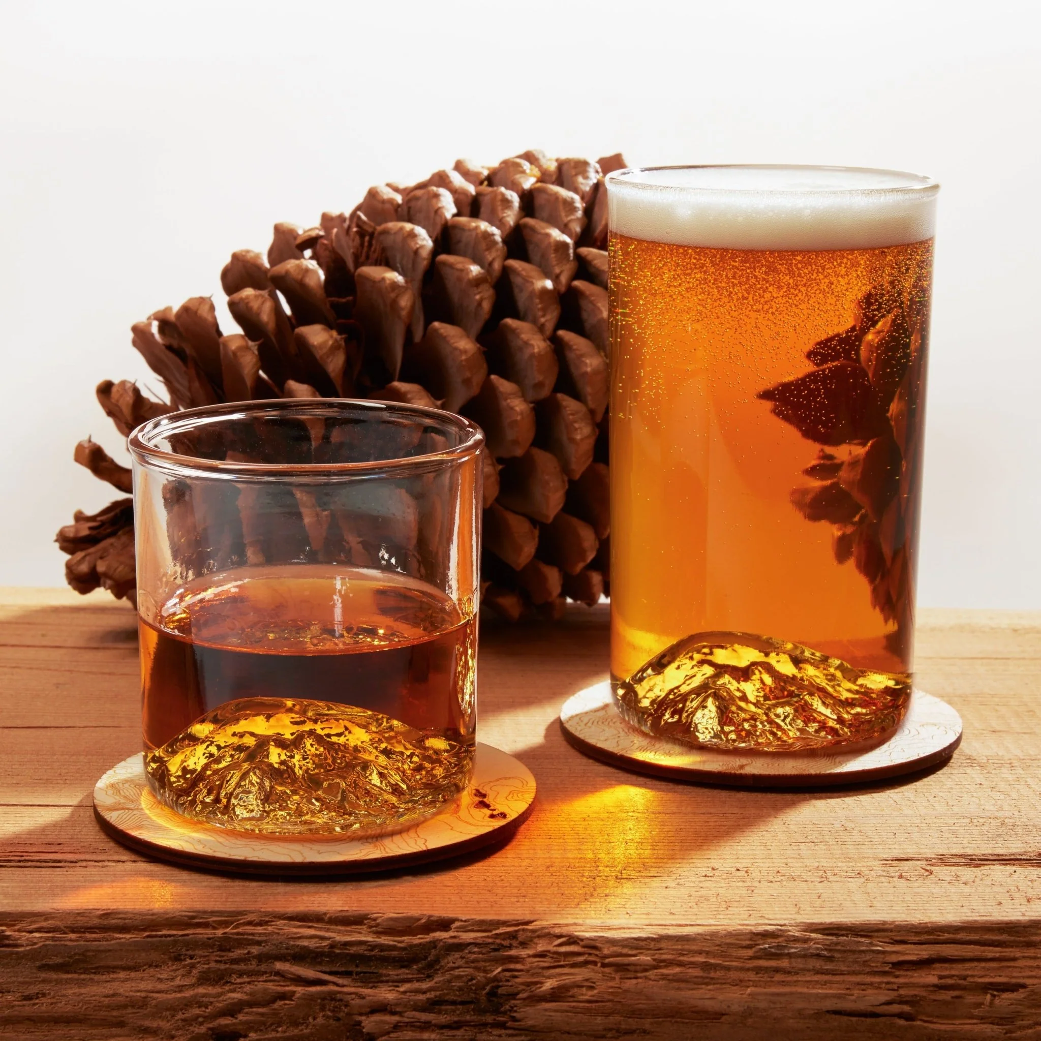 Custom wood coasters featuring USGS topographic data for Mammoth Mountain located in the heart of the Sierra Nevada. Set of 2 coasters of laser-cut birch ply with a cork backer. Made in USA and packaged in custom muslin bag.