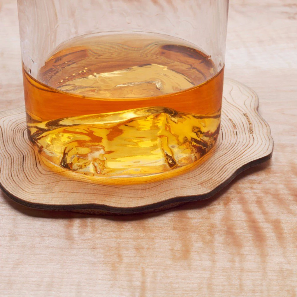 The Camels Hump Tumbler is our handblown, 8 oz glass with USGS data of Camel's Hump - Vermont's most iconic peak standing at 4,083 ft - molded into the base of the glass.